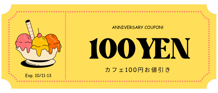 カフェではお買い上げ金額から100円お値引き(10/11~13限定)