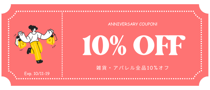 雑貨・アパレルは期間中全品10%OFF!(一部除外あり)