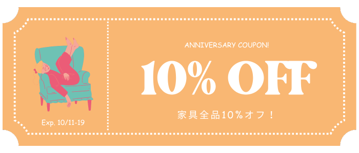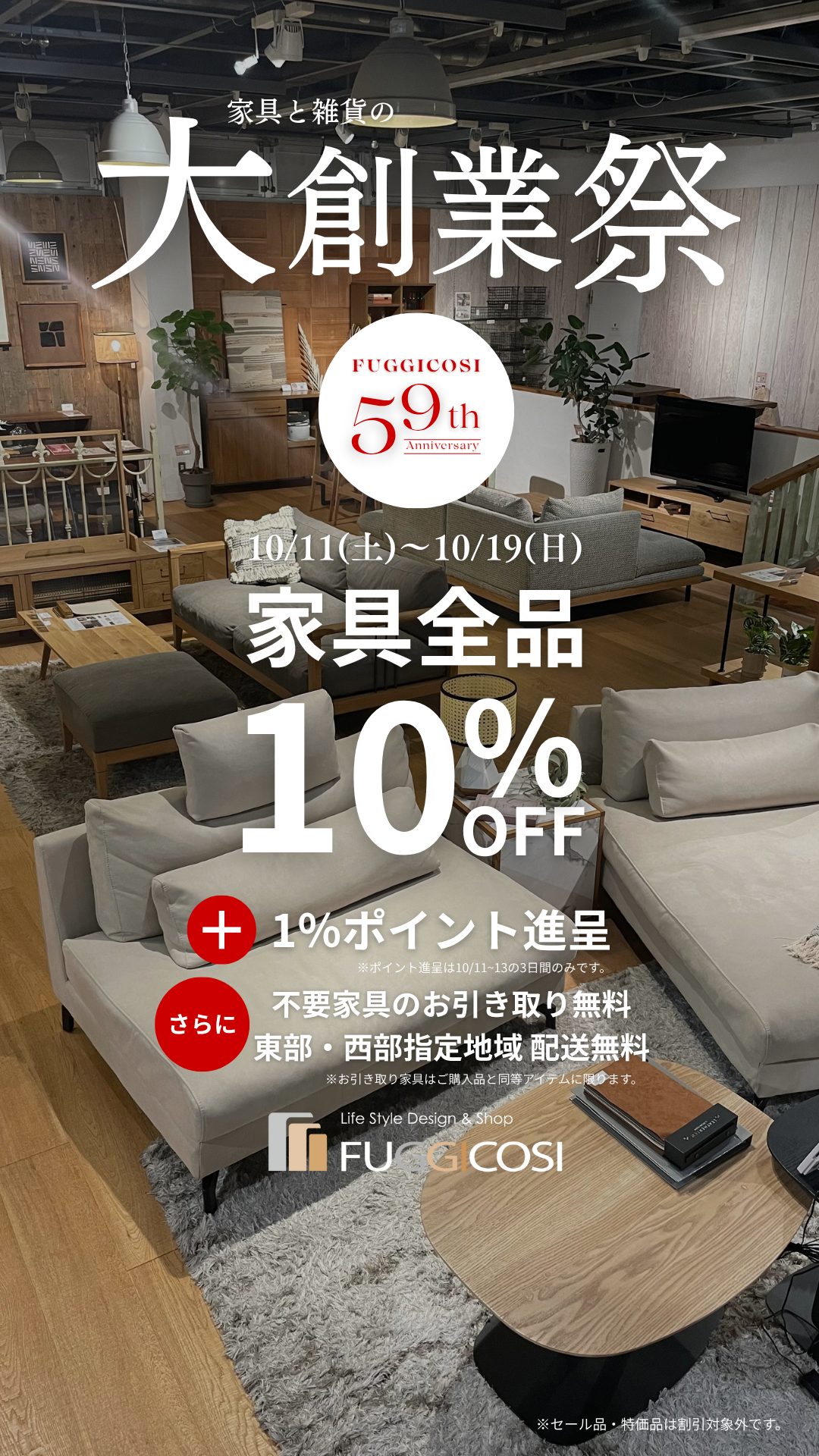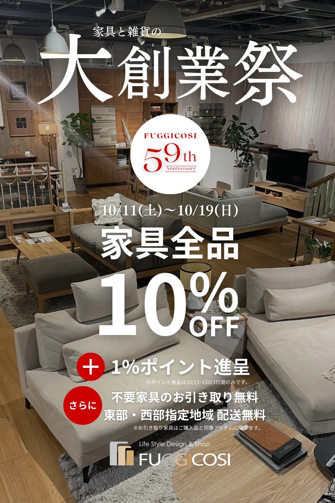 家具全品が10%OFF、さらにお買い上げ金額の1%分ポイント進呈!