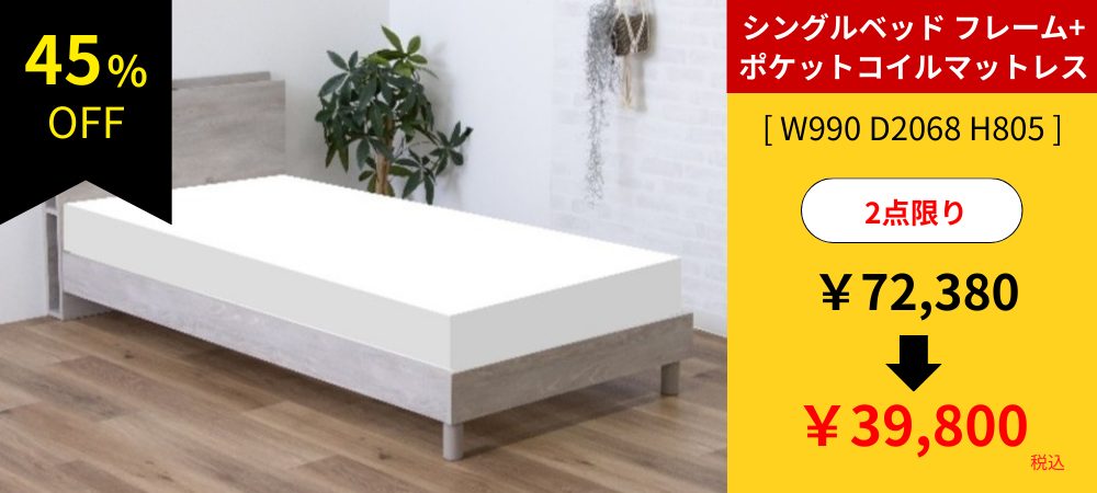 シングルベッド〈フレーム+ポケットコイルマットレス〉