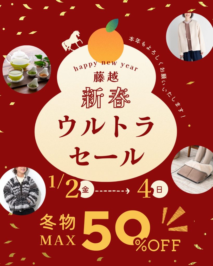 藤越の新春ウルトラセールは、運試しイベントから掘り出し物探しまで、お正月ならではの楽しみが詰まった特別な4日間です。