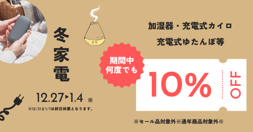 冬家電10%OFFクーポン【12/27(土)~1/4(金)】