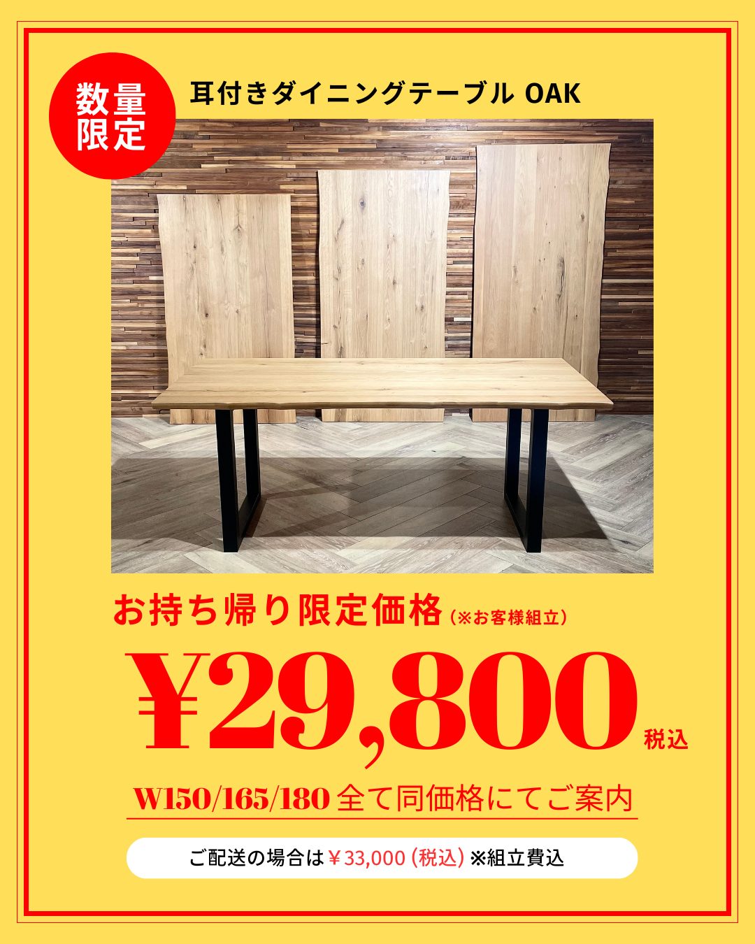 ・配送をご希望の場合:33,000円(税込)(配送費込み)