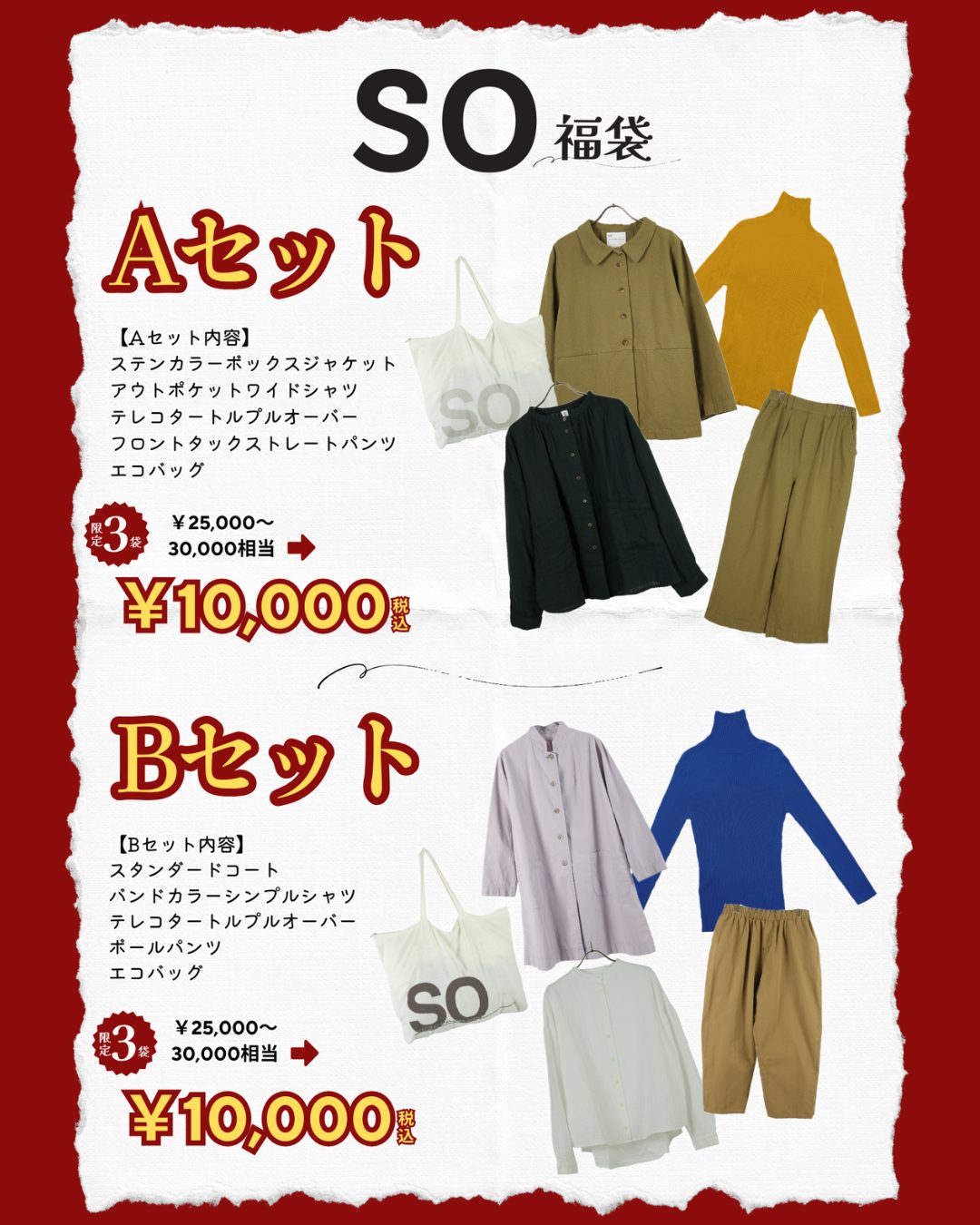 アパレルをトータルで楽しめるSOの福袋。