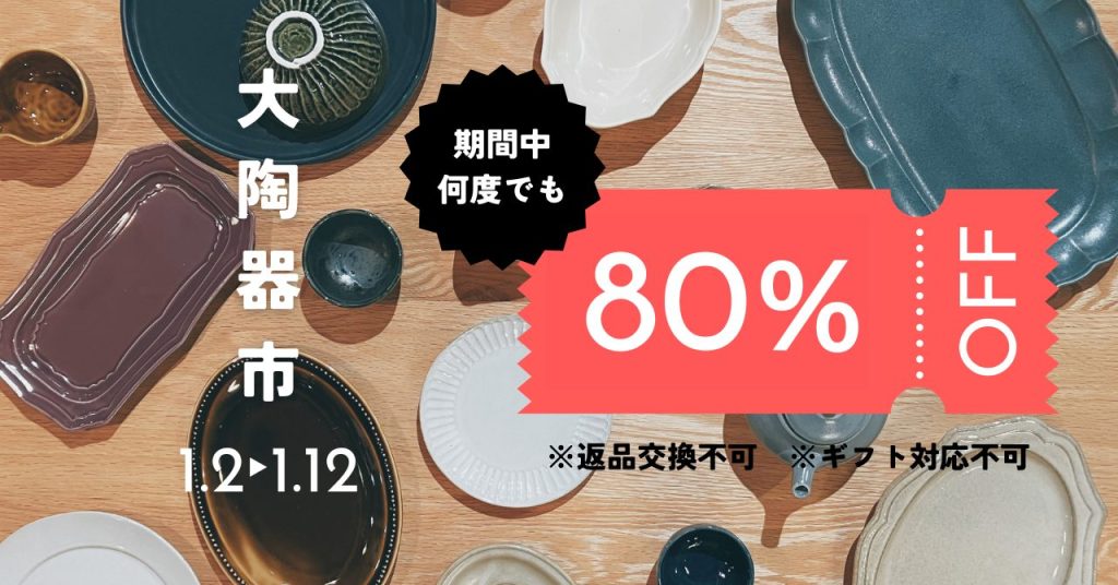併せて、アウトレット食器がMAX80%OFFのクーポンも配布中!