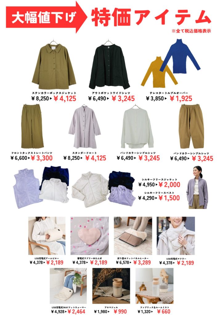 アパレルは再値下げブランドありのMAX50%OFF、冬物雑貨もMAX50%OFFになりました♪