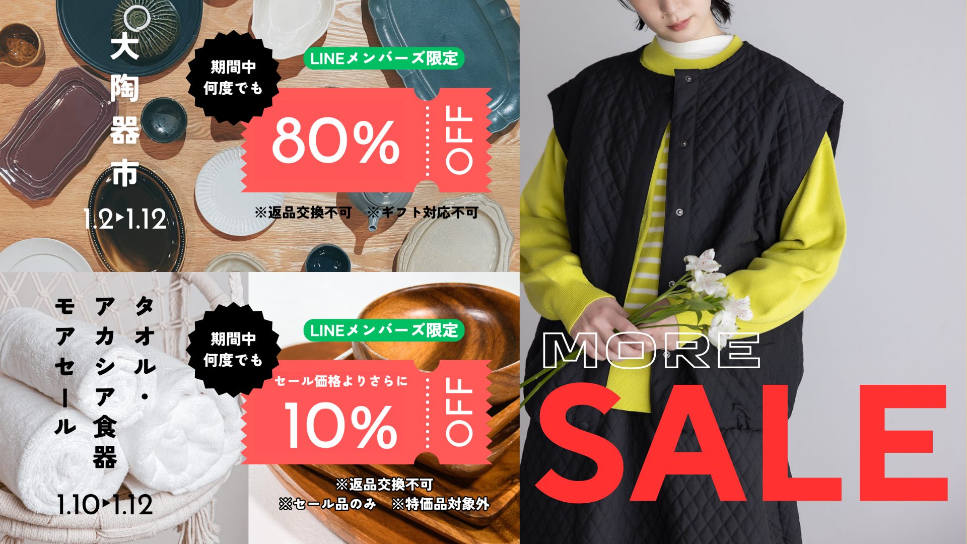 【LINE会員】モアセールクーポンMAX60%OFF|1/10(金)~1/12(月)