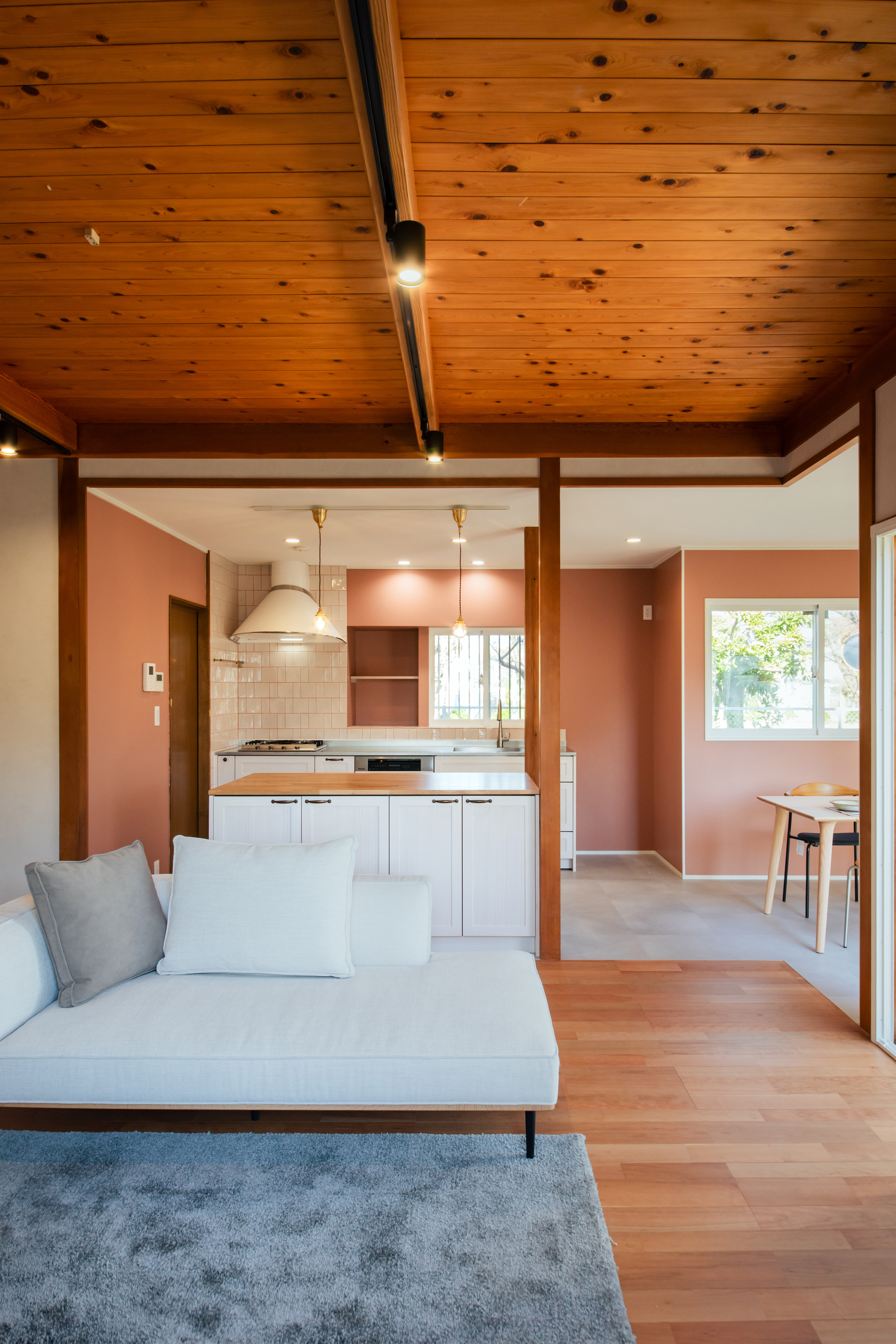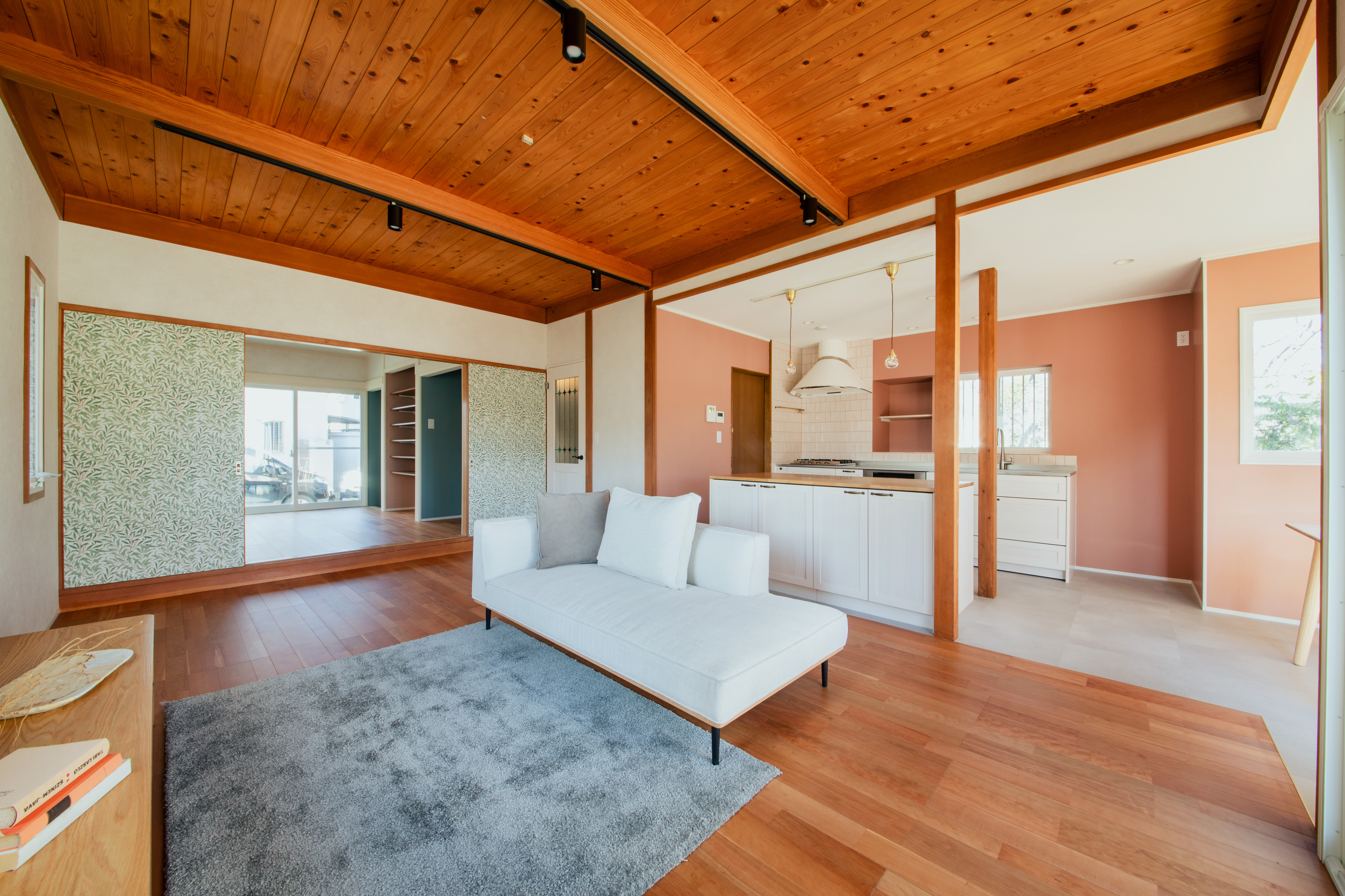 今回のリノベーションでは、木天井や柱など既存の構造を活かしながら、