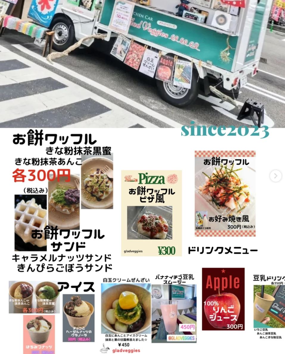 お餅ワッフルやアイス、ドリンクのキッチンカー。