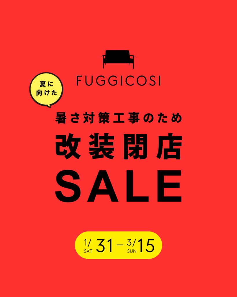 【改装工事に伴う一時閉店セール】工事中行き場を失った家具を特別価格に|1/31.sat-3/15.sun
